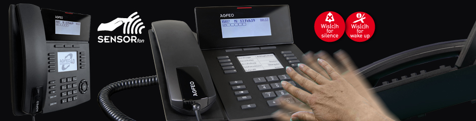 Schalten Sie doch einfach das Display des Systemtelefons in den Standby Modus. Nähern Sie sich dem Telefon mit der Hand, geht das Licht (wenn gewünscht auch die Tastaturbeleuchtung) von alleine wieder an. So sparen Sie Strom, können aber mit einer Handbewegung z.B. den Internstatus Ihrer Kollegen oder die SmartHome-Steuerung prüfen. Diese Funktion können Sie natürlich über die Konfiguration aktivieren/deaktivieren.